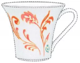 Apesar desta distinção, vale enfatizar que um mesmo registro protege ou a forma do objeto, ou o padrão, não os dois simultaneamente. No exemplo abaixo, o que está protegido é o padrão ornamental aplicado à xícara e não a forma da xícara em si. Neste caso, para obter exclusividade sobre ambos forma e padrão da xícara, seriam necessários dois registros.